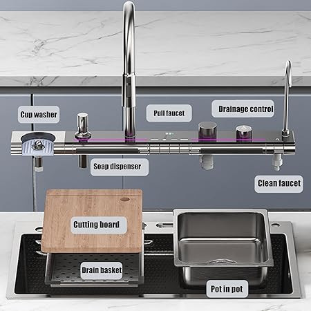 خروجی آب از آبشار】طوفان پیانو + خروجی آب از پرده آب، دو خروجی آب، زیبا و کاربردی، پرده مخفی آب مخفی خروجی آب نرم کننده شستشوی سبزیجات و میوه ها
