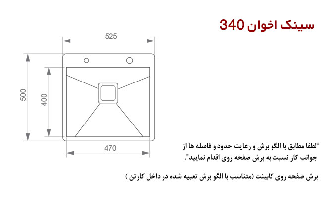 سینک اخوان توکار 340 این مدل لگن ظرفشویی با کیفیت بالا و ورق یک میلیمتری تولید شده به صورت دست ساز ابعاد این سینک 52 در 50 سانت و نصب توکار میباشد. این سینک از انواع عمیق به شمار میرود. سینک توکار اخوان مدل 340 دارای یک لگن است از لوازم جانبی این سینک میتوان به سیفون و زیرآب اشاره کرد