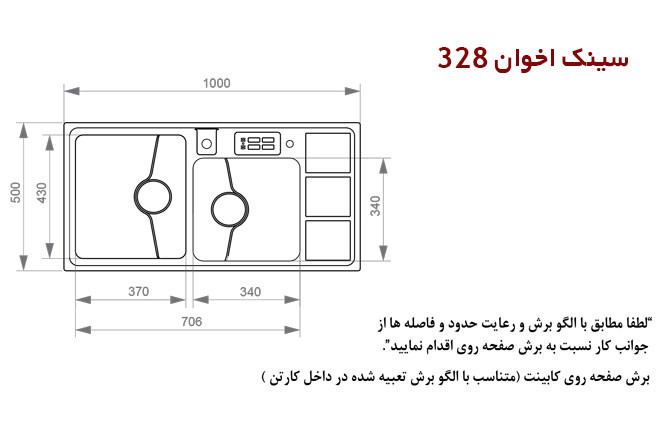 سینک اخوان مدل 328 توکار دارای ابعاد 100 * 50 سانتی متر با نصب توکار . شما اگر جزء آن دسته از مشتریانی هستید که فضای آشپزخانه کوچک و میهمان زیادی دارین حجم بالای لگن بزرگ این محصول حتما به کار شما خواهد آمد