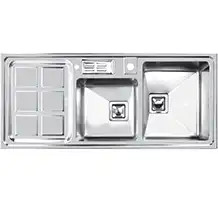 سینک اخوان توکار 318 داراب ابعاد 120 * 50 سانتی متری و ورق 1 میلیمتری با کیفیت. طراحی با حجم بالای لگن بزرگ شستن ظروف بزرگتر را در این محصول راحت تر مینماید که به همراه جامایع متصل بر روی سینک تولید میگردد