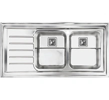 سینک اخوان s511 روکار این مدل سینک ظرفشویی دارای دو لگن فانتزی عمیق به عمق 23 سانتیمتر و ورق استیل 304 در این سینک به کار برده شده است که از نوع استیل ساده و معمولی با ضخامت 0.8 میلی متر است. این ورق، فولاد ضد زنگ بوده که با نام استنلس استیل و با علامت اختصاری AS304 شناخته شده است. از ویژگی های این مدل میتوان به جا مایع متصل به همراه سیفون فانتزی مربع اشاره نمود