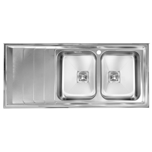 این سینک روکار اخوان دارای دو لگن و یک سینی طرح موج با ورق 0/8 میلیمتر 304 فرانسه بوده که خاصیت ضد زنگ دارد. ابعاد این محصول60*120 سانت است و البته فاقد هر گونه اکسسری همراه است.