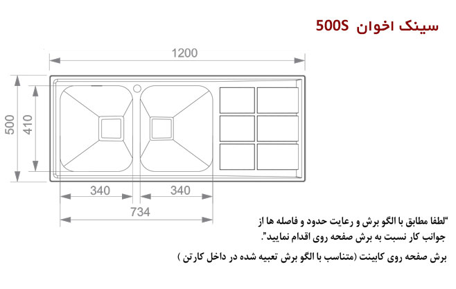 سینک اخوان توکار 500s ضخامت ورق استیل به کار رفته در این سینک 0/8 میلیمتر و عمق لگن 23 سانت. ابعاد این محصول 120 * 50 سانتی متر میباشد. بدون سرریز و جامایع بر روی سینی تولید میگردد