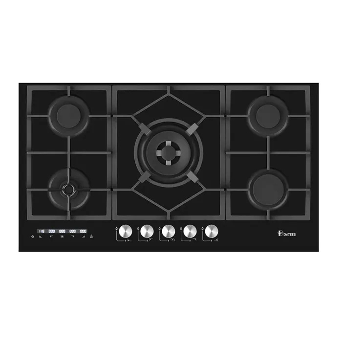 این گاز شیشه ای 5 شعله به رنگ مشکی دارای سیستم تایمر دیجیتال بر روی هر شعله است که می تواند با زمانبندی مشخص از سمت شما شعله را خاموش کند.