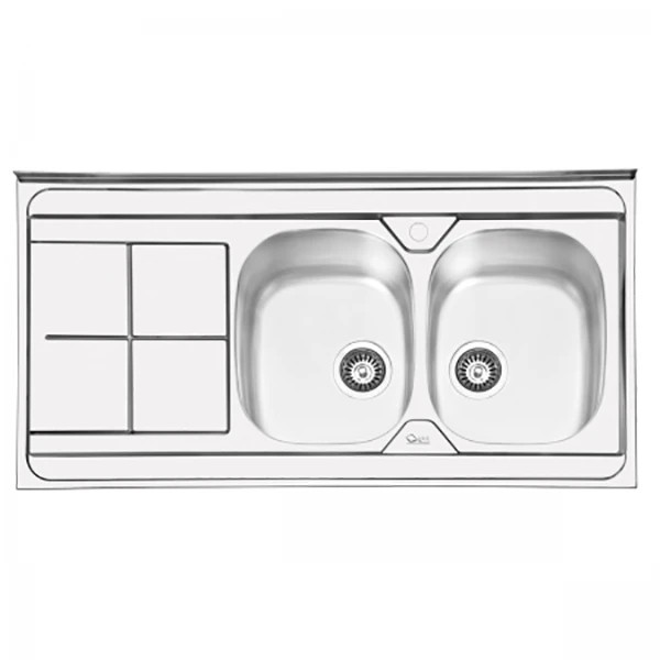 سینک ایلیا استیل 2041 توکار این محصول دارای دو لگن بزرگ هم سایز با ورق استیل ساخت کره و ضخامت 0/8 میلیمتری. از ویژگی های بارز سینک های ایلیا استیل میتوان به لبه عمیق برای جلوگیری از بیرون زدن آب اشاره نمود
