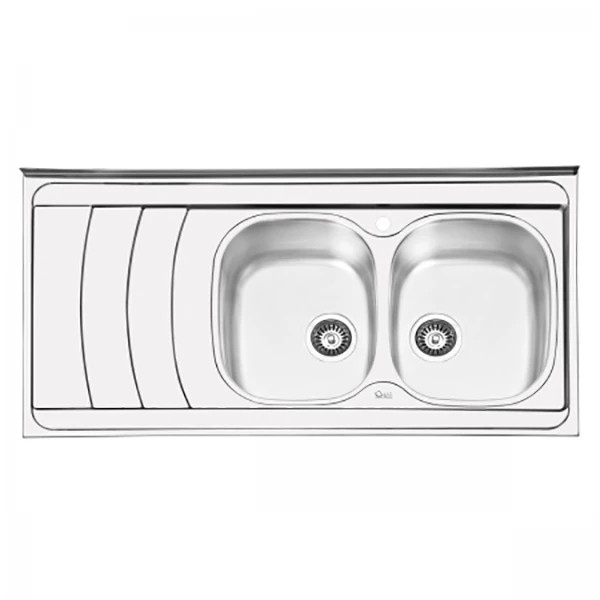 سینک ایلیا استیل 1041 روکار دارای طرح سینی زیبا با عمق لگن 22 سانتی متری و 2 لگن هم سایز بزرگ تولید شده در سایز 120 در 60 سانتی متر . ویژگی بارز این محصول میتوان به زیراب بزرگ فانتزی با طراحی زیبا در سینی میباشد