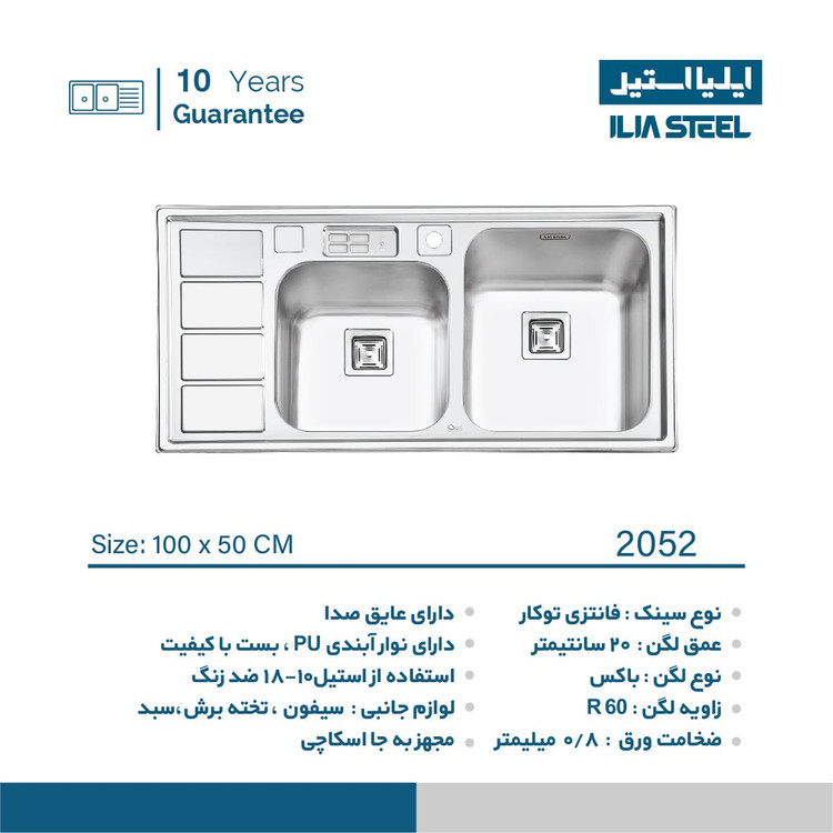 سینک ایلیا استیل فانتزی توکار مدل 2052